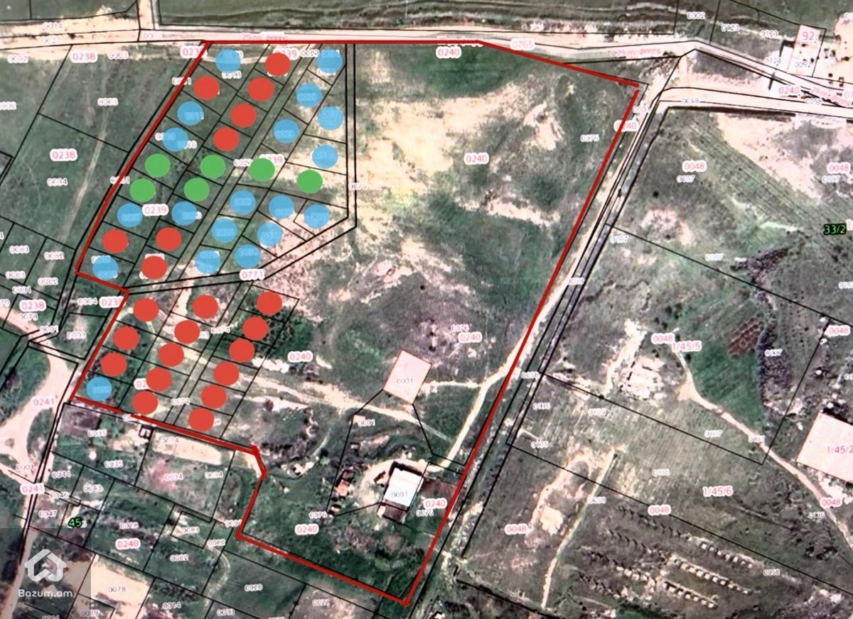 Գյուղնշանակության հող տնամերձ դառնալու հնարավորությամբ: Տնամերձի դիմումները արդեն գրված են հողերն էլ ընկնում են գենպլանի տակ: Տնամերձ դառնալու գումարը վճարելու եք դուք 1մ քառակուսու համար 2850 դրամ (ձեր ցանկությամբ, պարտադիր չի) : 4 կողմից կառուցվում են նոր բնակելի թաղամասեր: Բաց ու շատ գեղեցիկ տեսարան Հատիս սար (Հիսուսի արձան) և Արարատ լեռ: Օղակով նշվածները վաճառված են, իսկ ազատ հողերի վրա գրված են տվյալ հողի քառակուսիները: Նույն տեղում կա 5հա=50.000 քառակուսի հող, որից հնարավոր է մասնակի վաճառք: Հնարավոր է փոխանակում այլ արժեքով կլսեմ առաջարկներ: